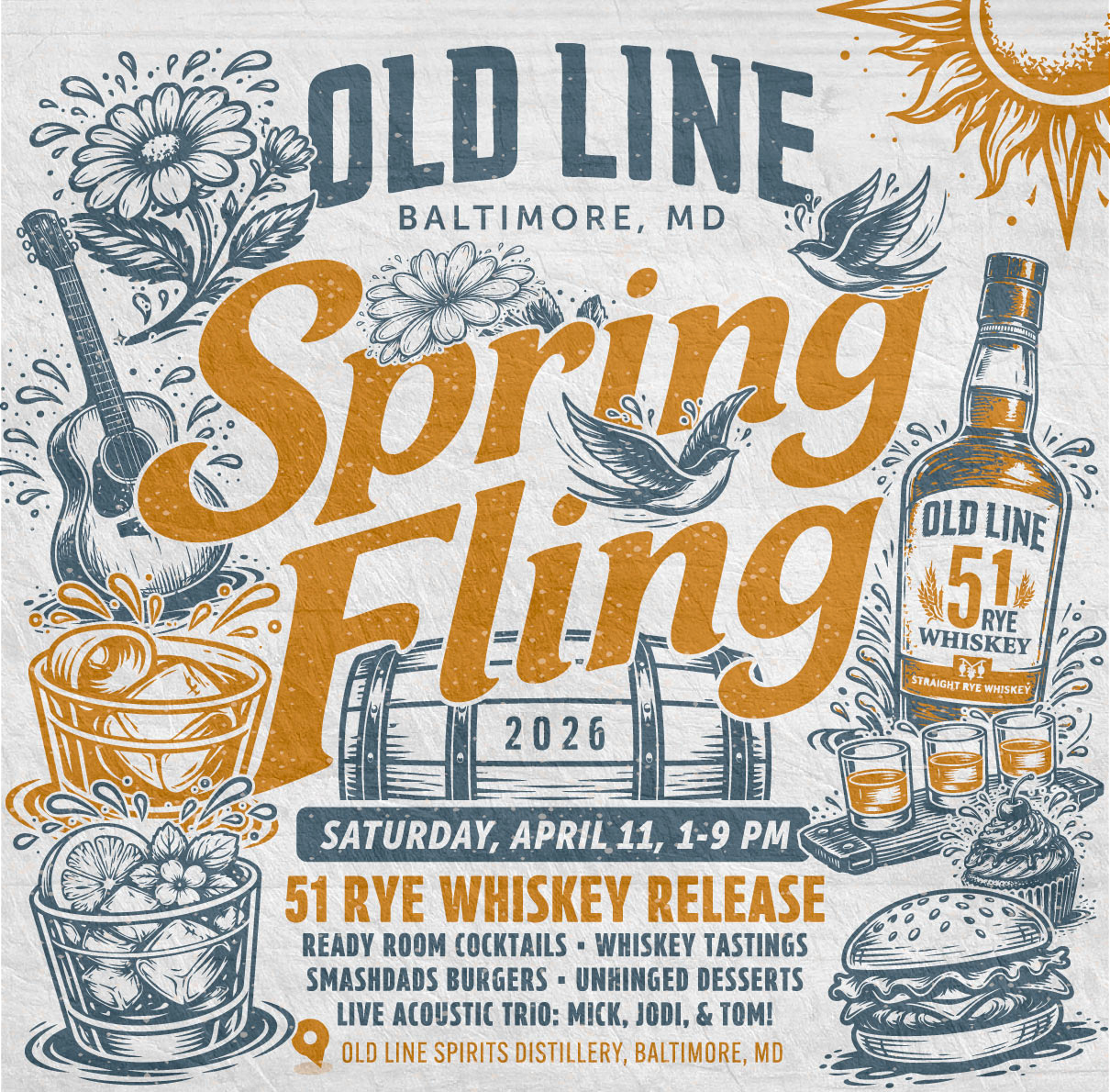 Step into the ready room—our cozy, aviation-inspired cocktail bar nestled inside the distillery. With exposed brick, leather lounge seating, and vintage naval touches, it’s the perfect place to sip bold cocktails crafted with our award-winning spirits. Whether you’re grabbing a flight, enjoying a seasonal cocktail, or just unwinding with friends, the ready room pairs small-batch flavor with big baltimore character.